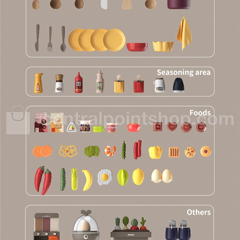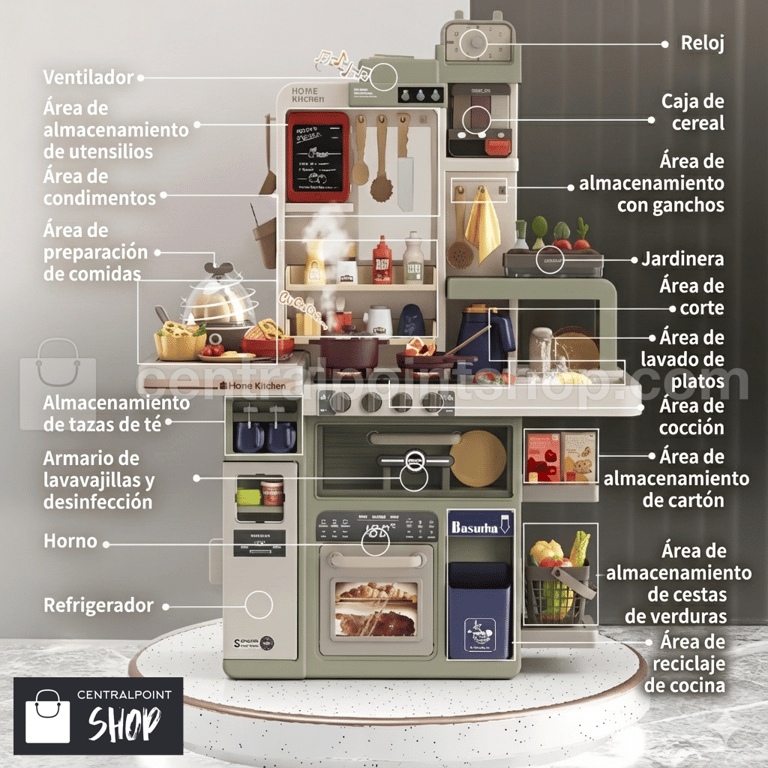 Incluye múltiples accesorios como olla, sartén, microondas y más, perfecto para juegos de rol y un regalo inolvidable para cualquier ocasión.