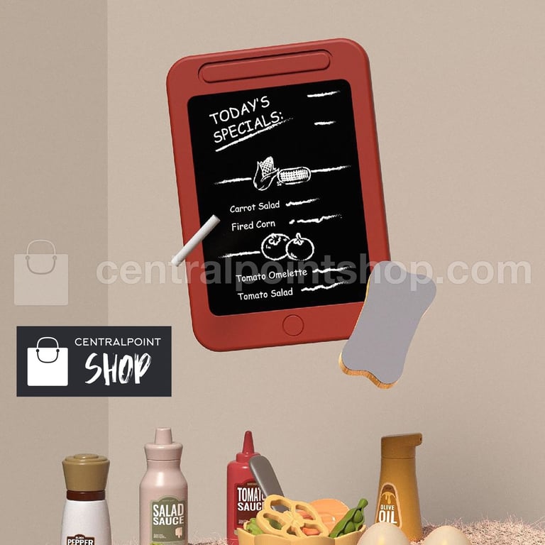 Fabricado con plástico duradero y no tóxico, incluye mini pizarrón con gis para aprender colores, palabras y dibujar mientras juegan.