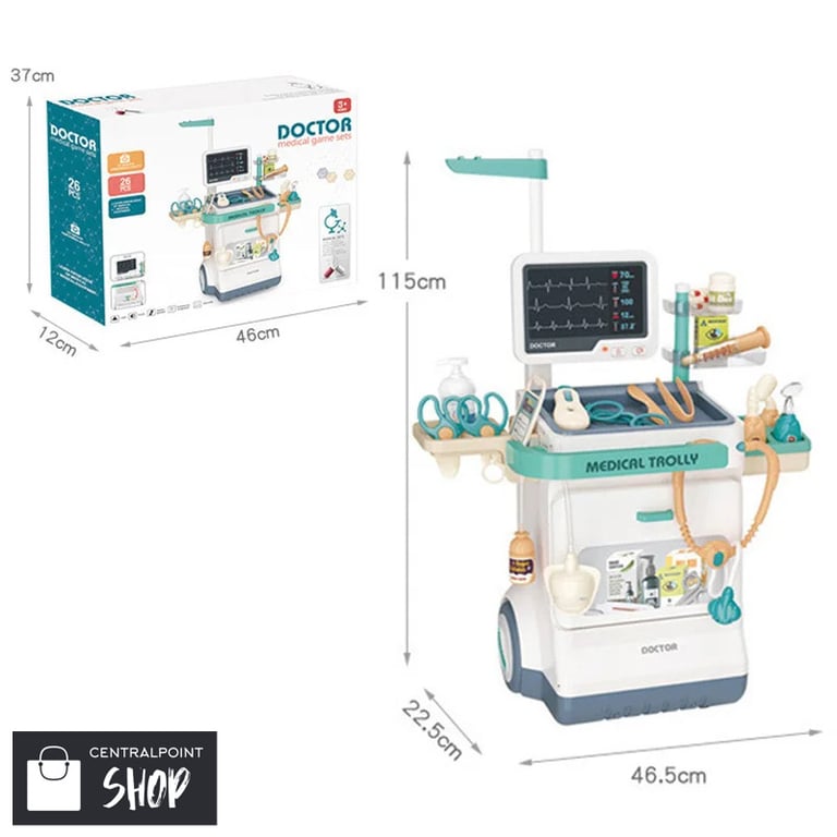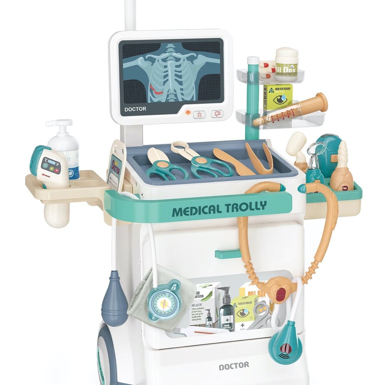 Incluye 26 piezas con carrito multifuncional, espacio de almacenamiento y accesorios médicos realistas para horas de juego educativo.