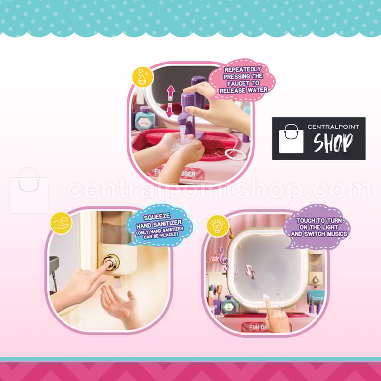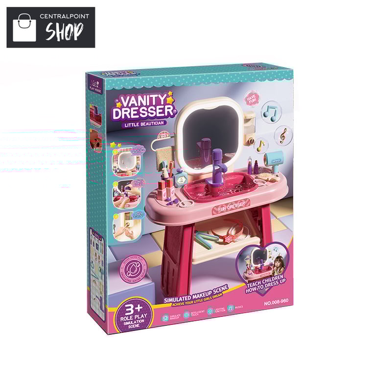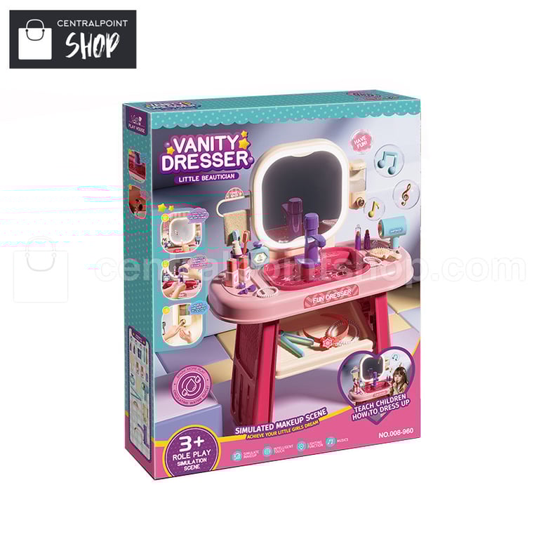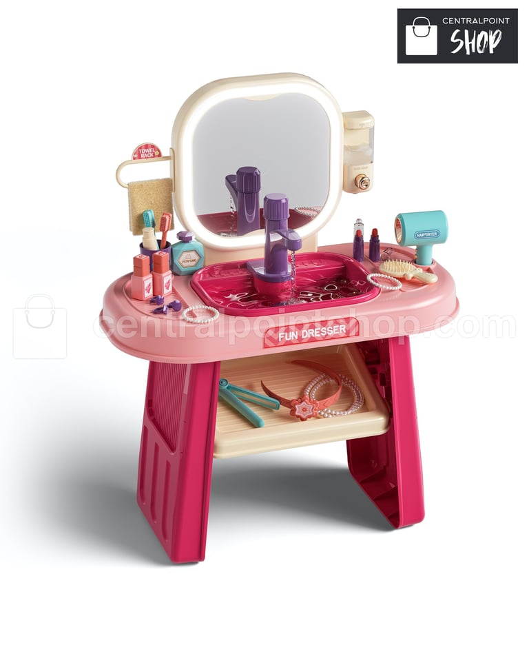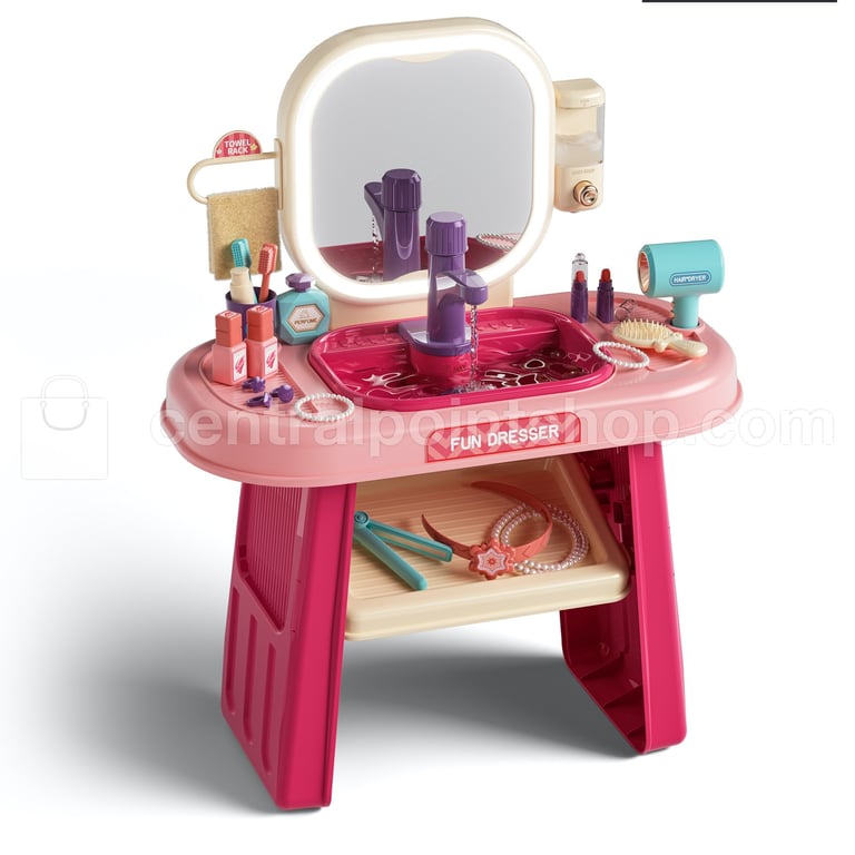 Tocador infantil diseñado para que las niñas imiten una escena real de maquillaje, fomentando el juego creativo y de roles.