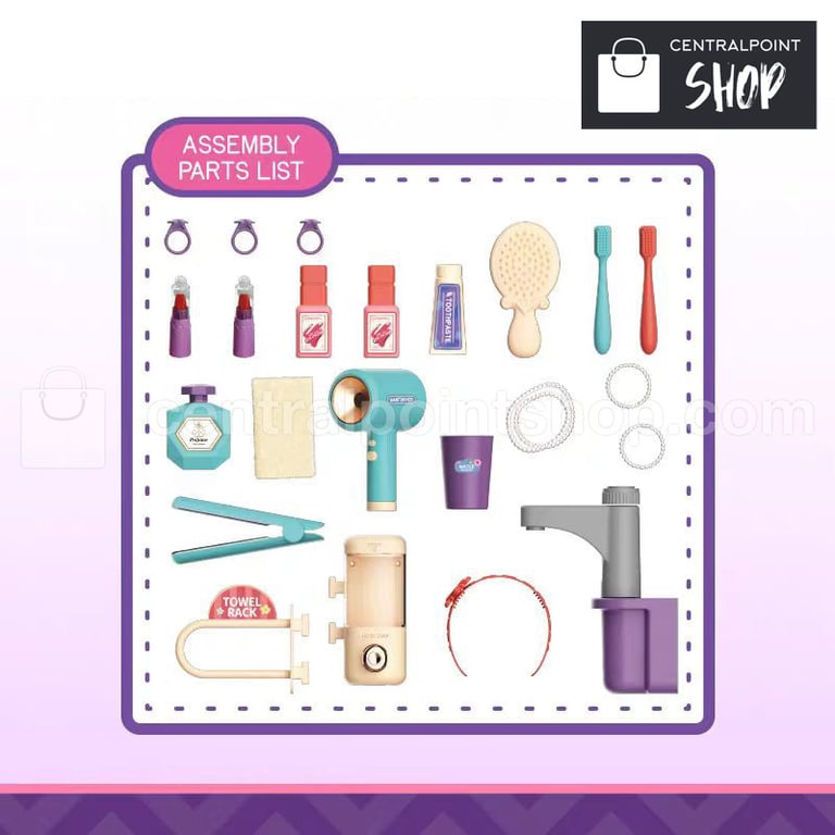 Incluye espejo, lavamanos, accesorios de maquillaje, luces y música para una experiencia envolvente y entretenida.
